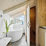 Badrumsfaciliteterna i Ln1880-Hjorring-Majvej-8 Villa inkluderar också en badtunna, en dusch och en tvättmaskin.